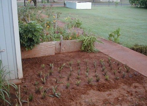Farmer Tom, when he lived in 15B, had some kind of plant growing that will be perfect for 15B's little garden area...the whole area except for some islands. It's perfect for someone who may be doing extensive traveling periodically...it requires virtually no maintainence. Heh, heh. I don't know it's name, yet, but I'll find out. There will be progress photos through time of this project.