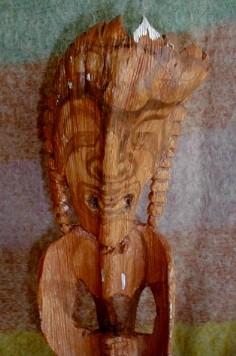 In the South Pacific, Tangaroa is much better known. Tangaroa is the national symbol of the Cook Islands and is found on the one dollar coin. There are many Tangaroa carvings around the Cook Islands and many being carved for sale to tourists. Here are some photos from my Rarotonga 2000 trips' visits the the carving factory of Rarotonga.