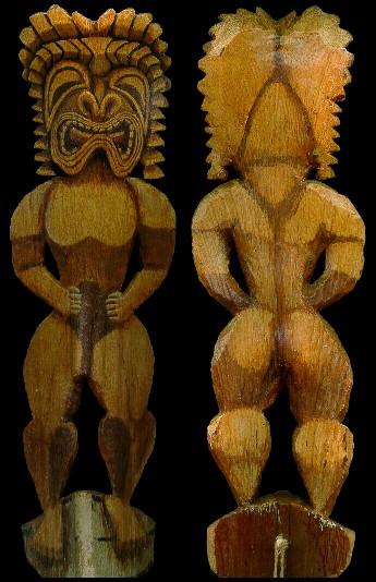 The four main Hawaiian (Polynesian) gods are Kane (Tane), Ku (Tu), Kanaloa (Tangaroa), and Lono (Rongo). Other Polynesian representations of the gods may be found elsewhere. I could find only one photograph of a carving of Kanaloa. I do not know if this carving was done before 1819, but the web site where I found it is dedicated to Kanaloa.
