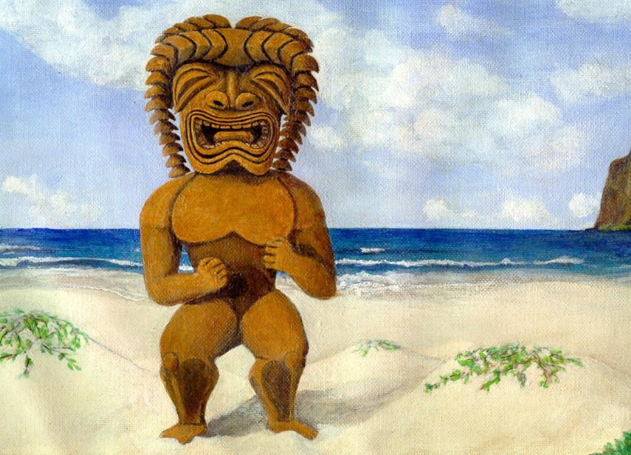 Anyway, in the 90s, I started this unfinished painting of Ku at Polihale. I wanted to picture Ku as a carving. It is Kona-style.