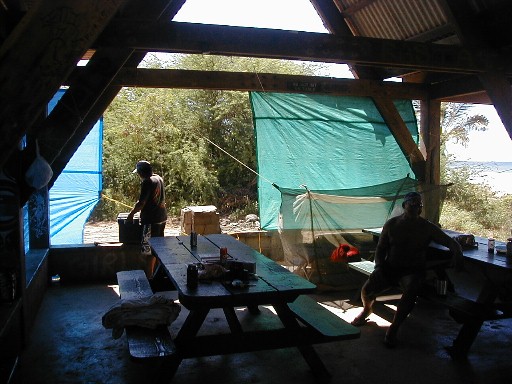 Sunday, I was thinking that I would put more photos from my 1999 visit to the island of Atiu. I hope to return for a visit in early 2004. The phone rang. It was Clifford. At work at Polihale when he was walking up to Pavilion Two, he was asked what was wrong with the state pickup. He turned around and saw smoke coming out from beneath the hood. There was an electrical fire going on which he put out with the fire extinguisher. He had a ride into town as he was calling me. He was on his way home to get his pickup to return to Polihale to get his things out of the truck. He asked me if I wanted to go along. Of course I did. I hadn't wanted to drive out the day before because it had rained Friday and I didn't want to deal with the mud. So, riding shotgun I could take some photos. My camera batteries weren't charged! I did a quick charge until he arrived. I had no idea how many photos I could take with those incompletely charged batteries.