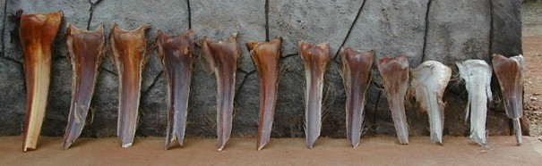 I plan to put PFP 13 up for auction on eBay sometime. PFP 13 has gone through a lot of changes. Back in November 2001, I had prepared these twelve Polihale palm fronds to paint during 2002: