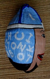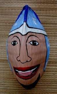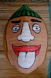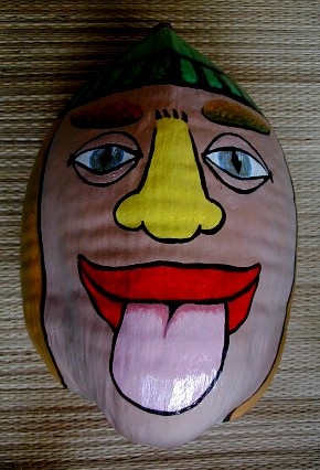 One of the things that I was painting was this coconut head for Tashi. She has a bunch hanging in some trees. This one turned out pretty silly.