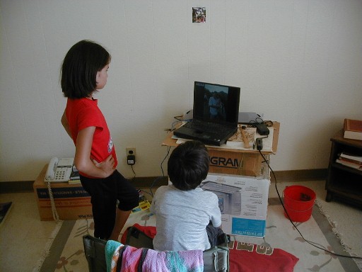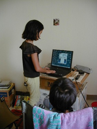 RJ watches Lani at the laptop.