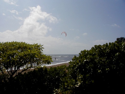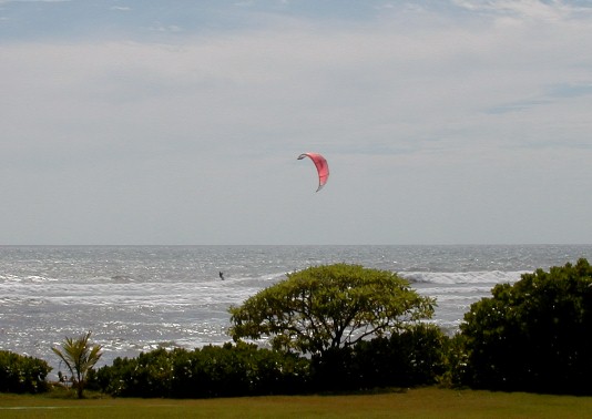 On windy days, kite surfers arrive.