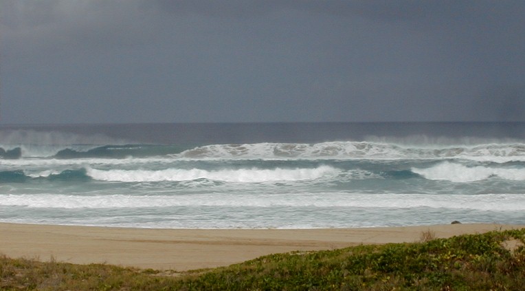 Somebody will wonder how the waves were. That dark lump is a Monk Seal (endangered).