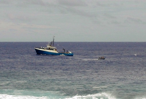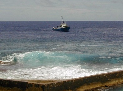 All the supplies for the island arrive by sea in small ships as shown or by planes like the one carrying me. The harbor is at the extreme left.