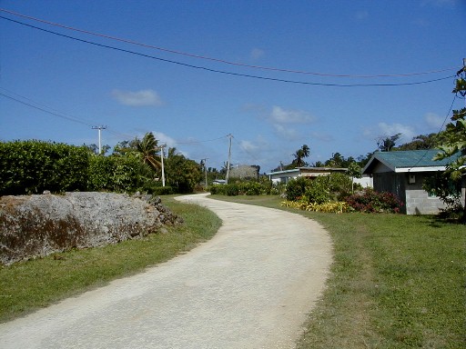 Looking left from the front of Are Manuiri and looking right on the main road of Atiu.