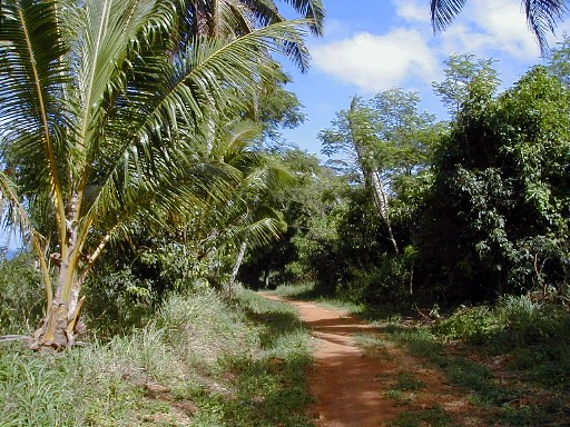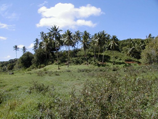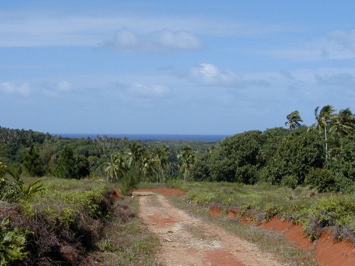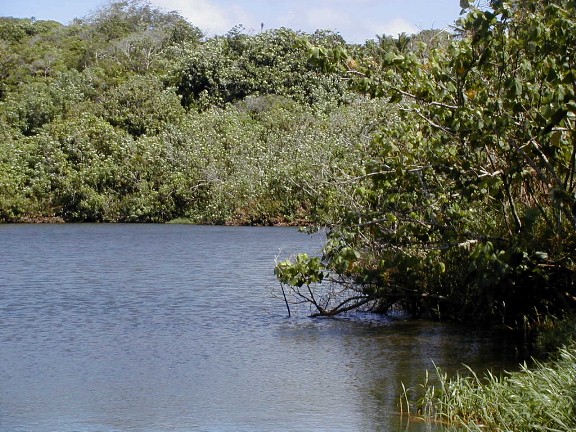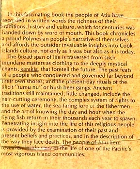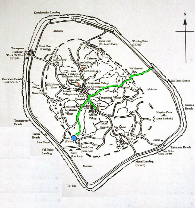 On my last day on Atiu, I wanted to get photos of Atiu's lake, Teroto. In 1985, while on Rarotonga, the capital island of the Cook Islands, I purchased the book pictured. In it was a black-and-white photograph of Teroto taken from a distance and also a description of the lake. It is a freshwater lake which is tidal (water leval fluctuates with the tides). There are fish and eels in the lake and many Atiuans learned how to swim there. There is a tunnel connecting the lake with the sea (see map). The photos that I took were the first and only color photos I've seen of Teroto.