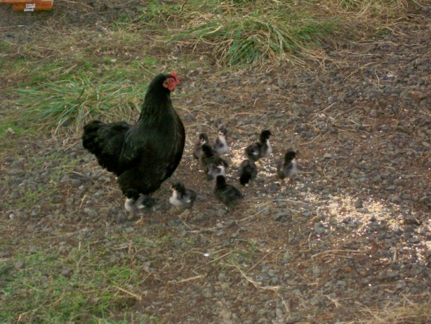 The animals always follow us around as we mill about the yard.