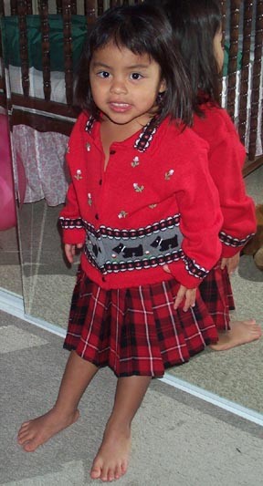 Lauren in her sailor suit. She was saluted by most employees. She is pretty independent and likes to do things for herself, so more often than not her shoes are on the wrong feet...like right here.