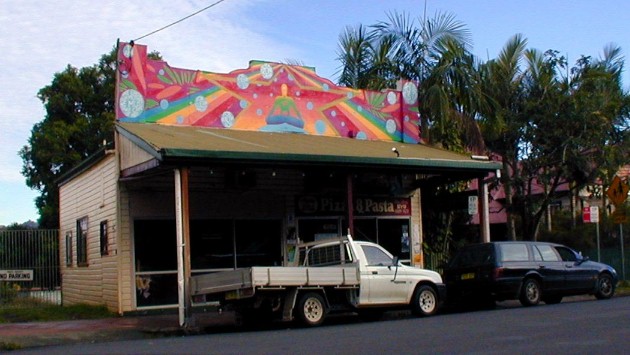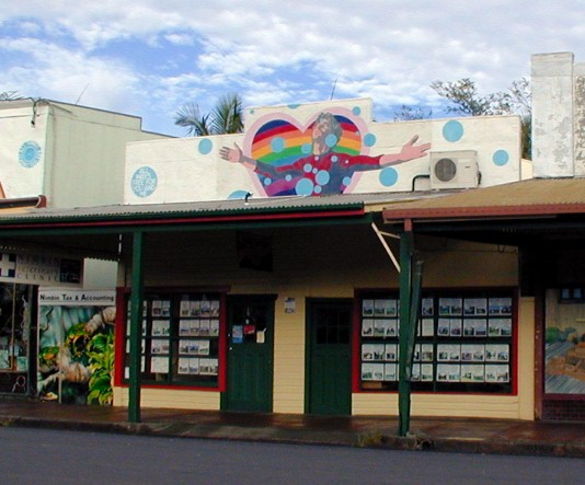 I walked through the village shooting snapshots along the way. When I walked back through Nimbin, I snapped more shots from the other side of the street. I was planning to select the best photo of most of the shops, not following any sequence. Now, I have decided to just put the photos pretty much chronologically as I walked around. So...