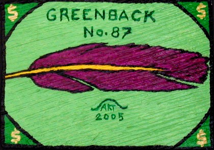 April. A drawing of the Purple Feather Greebacks will be with numbers 86 through ?. The Purple Feather Person featured will be PFP 10: