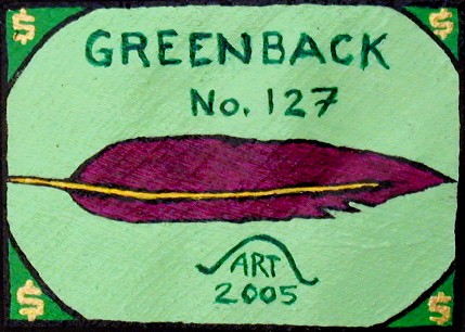 April. A drawing of the Purple Feather Greebacks will be with numbers 126 through ?. The Purple Feather Person featured will be PFP 18: