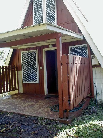 The main entrance to chalet 1 by the road.