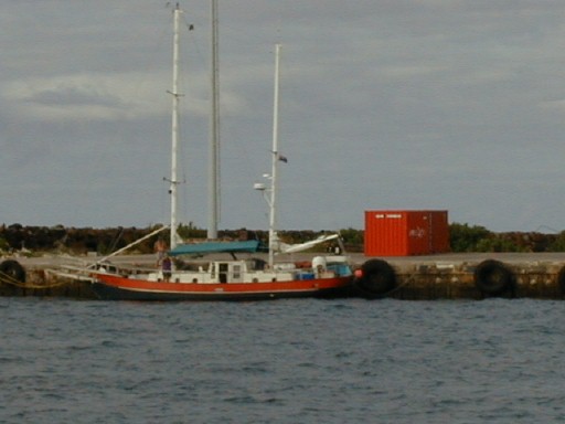 That cargo ship in the background is one of two that take supplies to the outer Cook Islands. These vessels are the means by which travelers may visit the northern Cooks and Cook Islanders travel from island to island on them. It's more comfortable to sleep on the deck as the local travelers do.
