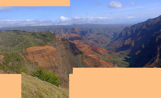 Then we stopped at Pu'u Hinahina Lookout where I took three photos of Waimea Canyon and this his how they stitched.