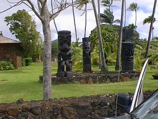 We took Dale to the airport by way of Koloa and showed him some large carved wooden tikis.