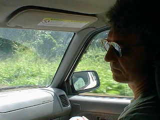 Outside the car windows, there is a lot of green on Kaua'i.